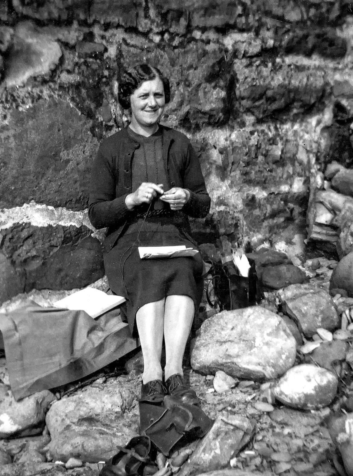 Mother kniting at the beach, 1942.